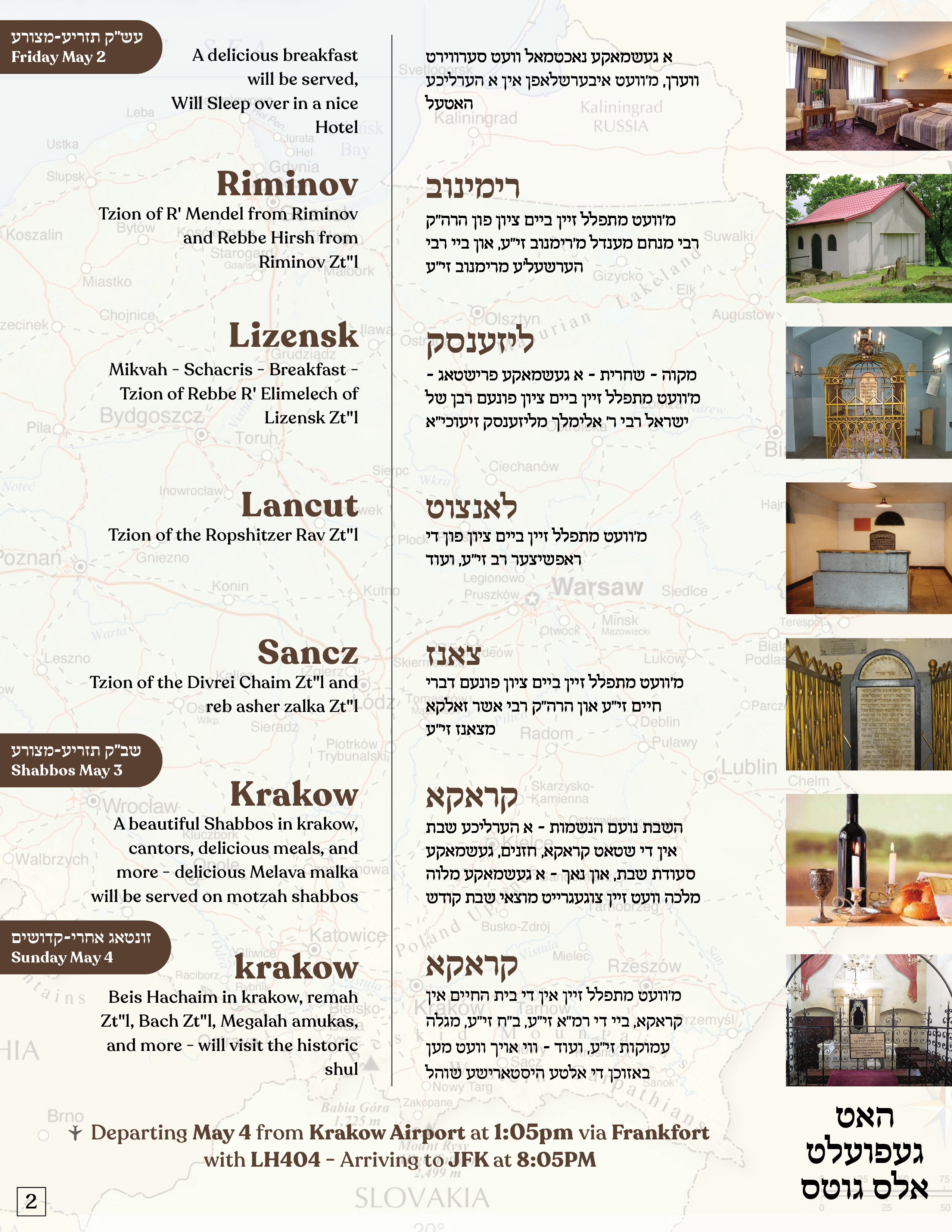 מען וועט האבן די זכי’ה צו מתפלל זיין און : בודפעסט, קאלוב, קערעסטיר, ליסקא, איהעל, רימאנוב,ליזענסק,צאנז, קראקא